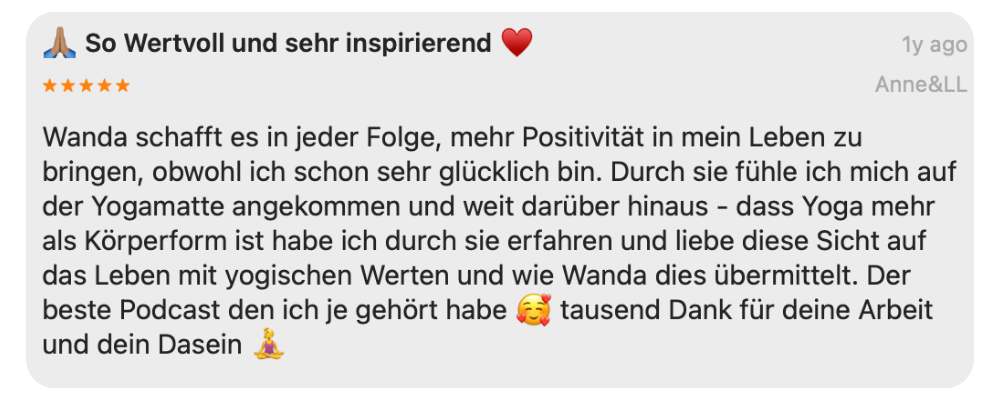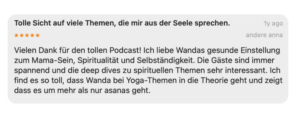 Lass dich inspirieren von Solo-Folgen, in denen Wanda persönliche Erfahrungen und Lebenslektionen teilt und gelebte Weisheit aus Yoga, Tantra und Psychologie mit dem echten Leben verbindet – freu dich auf ehrlichen Gesprächen mit besonderen Menschen und geführten Meditationen.