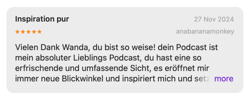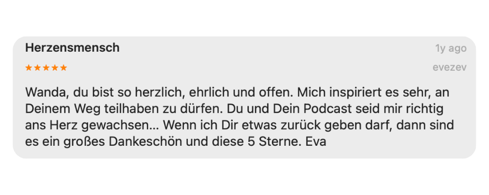 Gibt es eine Frage an mich, ein Herzensthema oder eine Idee für eine neue Folge – solo oder mit einem spannenden Interviewgast? Schreib mir gern – vielleicht greife ich dein Thema schon bald im Podcast auf.