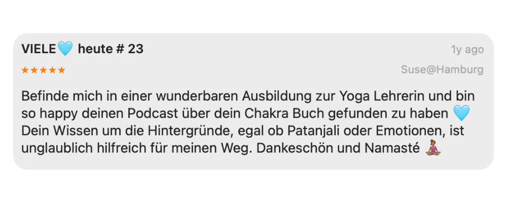 Du erfährst als Erste von meinen neuesten Angeboten, Yogaklassen, Aus- & Weiterbildungen und Retreats. Ich nehme dich mit in mein Leben in Portugal, teile Inspiration zu meinen Büchern, Podcast-Reels & neuen Folgen – und schenke dir yogische Teachings & Philosophie für Herz & Seele.