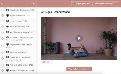 Du bekommst eine Yogasequenz rund um Rückbeugen und 22 einzelne Videos in denen ich die Rückbeugen Asanas zeige.