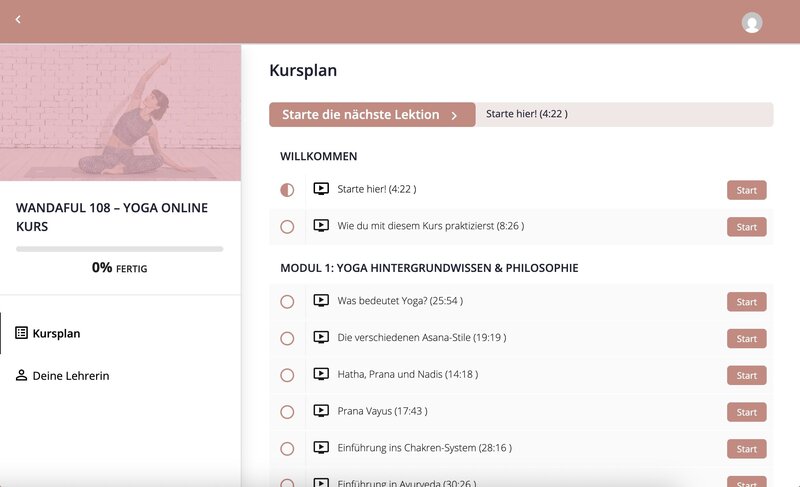 „Wandas Wandaful 108-Yoga Online Kurs kann ich jedem an Herz legen, der sich für Yoga interessiert. Der Kurs ist für jedes Level geeignet, sowohl für Anfänger, Wiedereinsteiger aber auch für fortgeschrittene Yogi. Wanda leitet kompetent an und nimmt einen durch ihre herzliche Art den ganzen Kurs über mit. Sehr übersichtlich ist der modulare Aufbau, da man dadurch gezielt die Theorie- und Praxis-Module auswählen kann, in die man tiefer einsteigen möchte.“